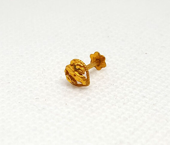 Indulge in timeless elegance with our Gold Nose Pin, a masterpiece weighing 0.210 grams. This exclusive deal boasts exquisite craftsmanship, adorned with dazzling that add a touch of sophistication. Crafted with precision, this stunning Gold Nose Pin comes with a secure gold stopper, ensuring both style and comfort. Embrace confidence with our 7-day return policy, and enjoy the luxury of free shipping. Elevate your jewelry collection with this stunning piece from our esteemed Gold Collection, offering the finest quality at competitive gold rates. Experience opulence redefined with every wear.