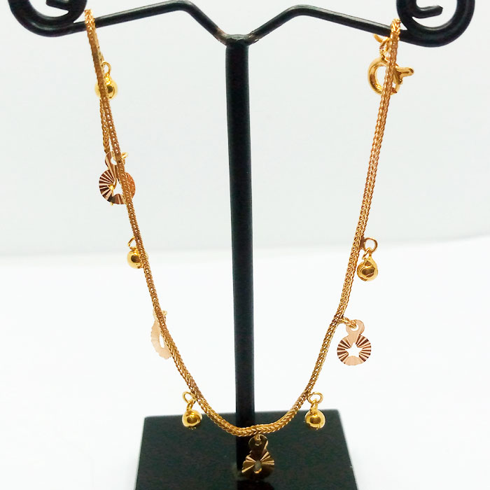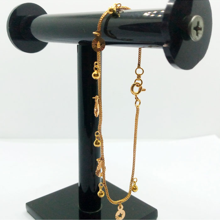 Elevate your elegance with our exquisite 21 Karat Gold Bracelet from our Jewelry Collection. Crafted to perfection, this stunning piece of bracelet boasts a net weight of 2.220 grams, ensuring a delicate yet alluring adornment for your wrist. Its intricate design is complemented by a chain set weighing 3.020 grams, adding a touch of sophistication to any ensemble. Dazzle with the brilliance of 21 Karat gold, embracing luxury and timeless beauty. Whether for everyday glamour or special occasions,this bracelet is a symbol of refined taste and unmatched craftsmanship, making it an indispensable addition to your jewelry repertoire.
