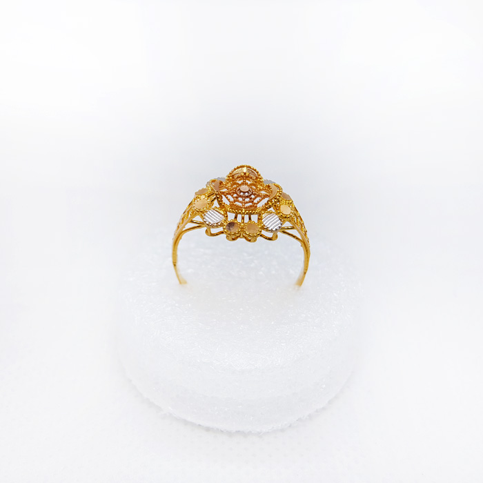 Elevate your style with this exquisite 21 Karat Gold Ring, a true masterpiece of craftsmanship. Weighing a delicate 1.760 grams, it exudes elegance and sophistication. The intricate design and expert artistry make this piece a must-have jewelry item. Whether you choose to wear it for a special occasion or as an everyday accessory, its versatility knows no bounds. With a gross weight of 2.460 grams, it strikes the perfect balance between daintiness and durability. Plus, we offer customization for the ring size, ensuring a comfortable fit thats uniquely yours. Embrace timeless beauty with this 21 Karat Gold Ring and make a statement with every gesture.