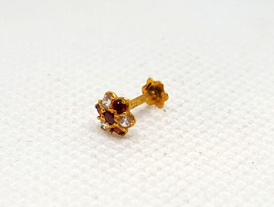Introducing our exquisite Gold Nose Pin, a captivating piece weighing 0.210 grams, meticulously crafted to enhance your elegance. This exclusive deal features a dazzling ensemble of Red & White Stones, adding a touch of vibrancy to your look. The intricate design includes a Gold Stopper for secure and comfortable wear. Embrace the assurance of our 7 Days Return Policy, ensuring your satisfaction. With the allure of gold and a commitment to quality, this nose pin is a timeless addition to your jewelry collection. Benefit from the luxury of Free Shipping and revel in the charm that transcends trends.
