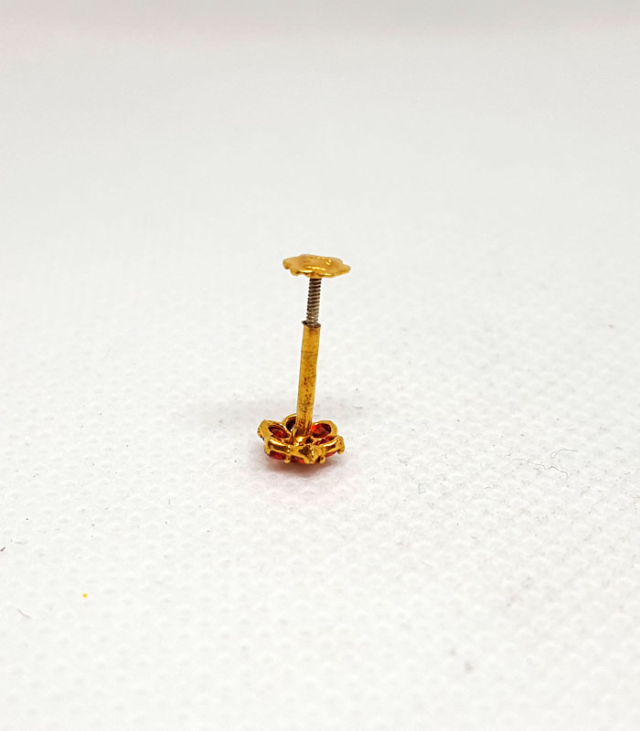 Introducing our exquisite Gold Nose Pin, a true embodiment of elegance and style. Crafted with precision, this delicate piece weighs just 0.220 grams, showcasing the perfect balance between sophistication and subtlety. Adorned with Radiant red Ruby stones, it adds a touch of glamour to your look. The Stunning Nose Pin comes with a secure gold stopper, ensuring both comfort and durability. Take advantage of our exclusive deal, accompanied by a 7-day return policy for your peace of mind. Elevate your jewelry collection with this timeless piece, and enjoy free shipping. Embrace the allure of gold, embodying the essence of luxury at the current gold rate.