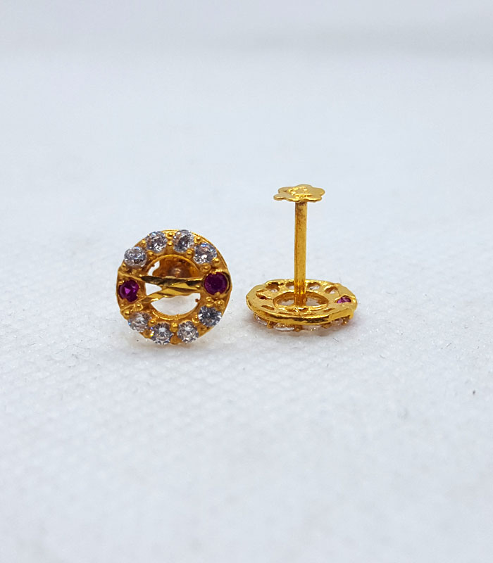 Elevate your elegance with these exquisite Gold Tops, weighing a delicate 0.930 grams. These stunning earrings feature a secure screw stopper, ensuring comfort and security for all-day wear. Adorned with dazzling white and red stones, they add a touch of sophistication to any ensemble. Crafted with precision and care, these Stunning Gold Tops are a perfect blend of luxury and style. Enjoy free shipping on your purchase, making it easier than ever to add these beautiful pieces to your jewelry collection. Indulge in the timeless allure of gold and let these earrings be the highlight of your accessory wardrobe.