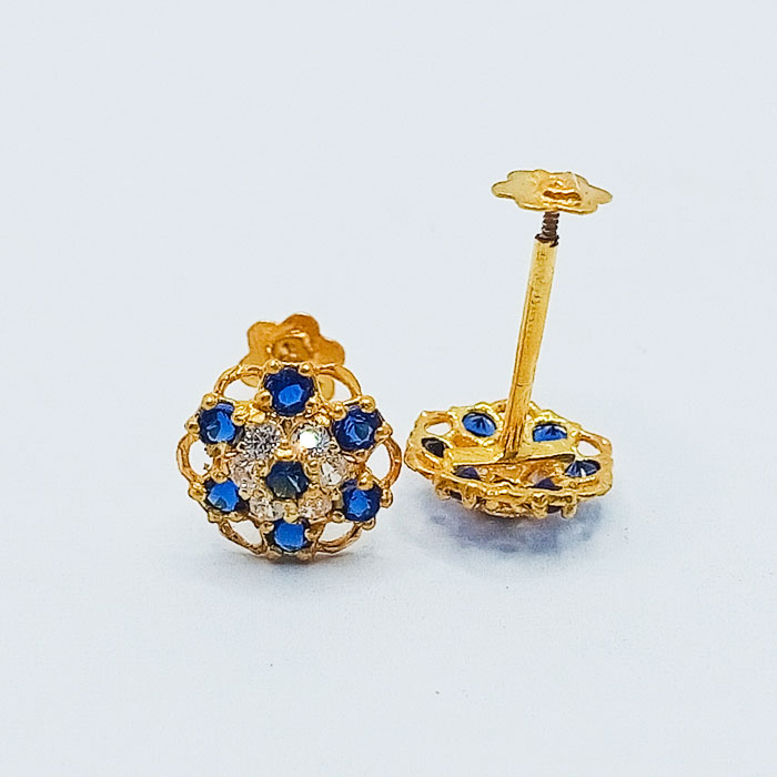 Introducing our Round Shape Neelum Stone Gold Tops, exquisitely crafted with a net weight of 0.610 grams. These elegant tops feature a stunning Neelum stone, adding a touch of regal charm to your jewelry collection. Designed with a secure screw stopper, they ensure a comfortable and dependable fit. Enjoy the luxury of free shipping and the convenience of our 7 days return policy. Enhance your style with these beautiful Gold Tops, reflecting the timeless elegance and enduring value of gold at today’s competitive gold rates. Perfect for any occasion, they are an essential addition to your jewelry wardrobe.