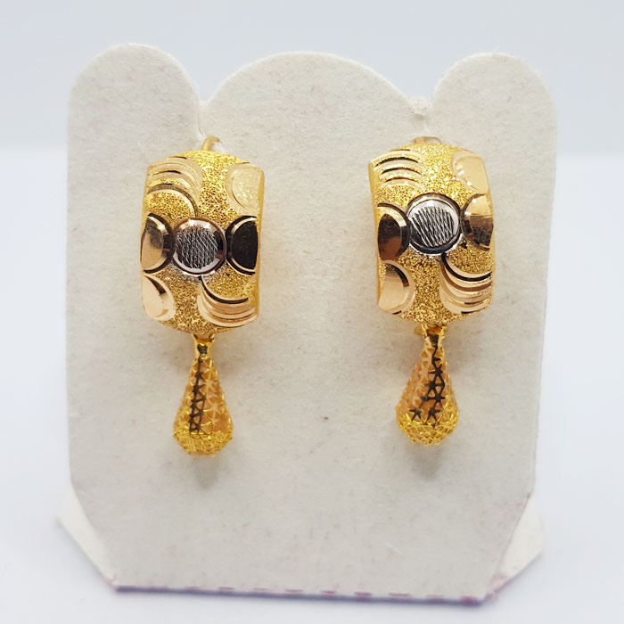 Introducing our exquisite 21 Karat Gold Earring, a true masterpiece of elegance and craftsmanship. This stunning piece of earring boasts a net weight of 2.390 grams, providing a delicate and comfortable wear. The intricate jewelry design is further enhanced by a 3.090-gram gross weight, ensuring a robust yet refined appearance. With the option for customization, you can make this earring uniquely yours, tailored to your preferred size. Whether for a special occasion or everyday luxury, this unique earring is a testament to timeless beauty and individuality, perfect for adding a touch of sophistication to any ensemble. Elevate your style with our 21 Karat Latest Gold Earring today.