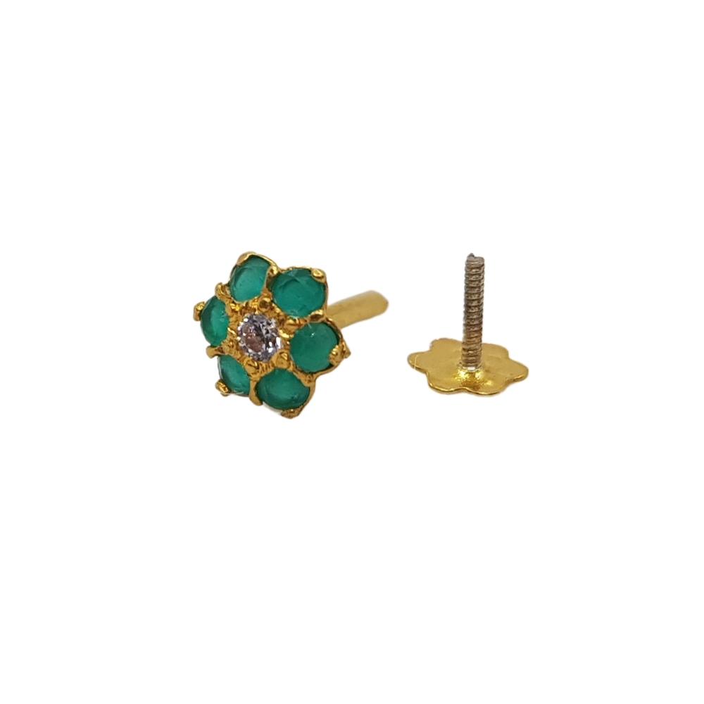 Introducing our exquisite Gold Nose Pin, a delicate adornment designed for elegance and grace. Crafted from pure gold with a net weight of 0.160 grams, this exclusive piece features a captivating green stone, perfect for girls and ladies alike. Its intricate design is complemented by a secure gold stopper, ensuring both style and comfort. Enjoy the confidence of our 7-day return policy and relish the convenience of free shipping. Elevate your style with this stunning piece of nose pin that embodies sophistication and timeless beauty, a perfect reflection of the allure of gold.